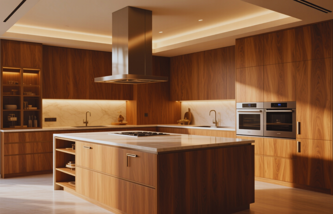 Wood cabinetry brings warmth and natural texture, but countertop color determines whether the space feels cohesive or disconnected.
